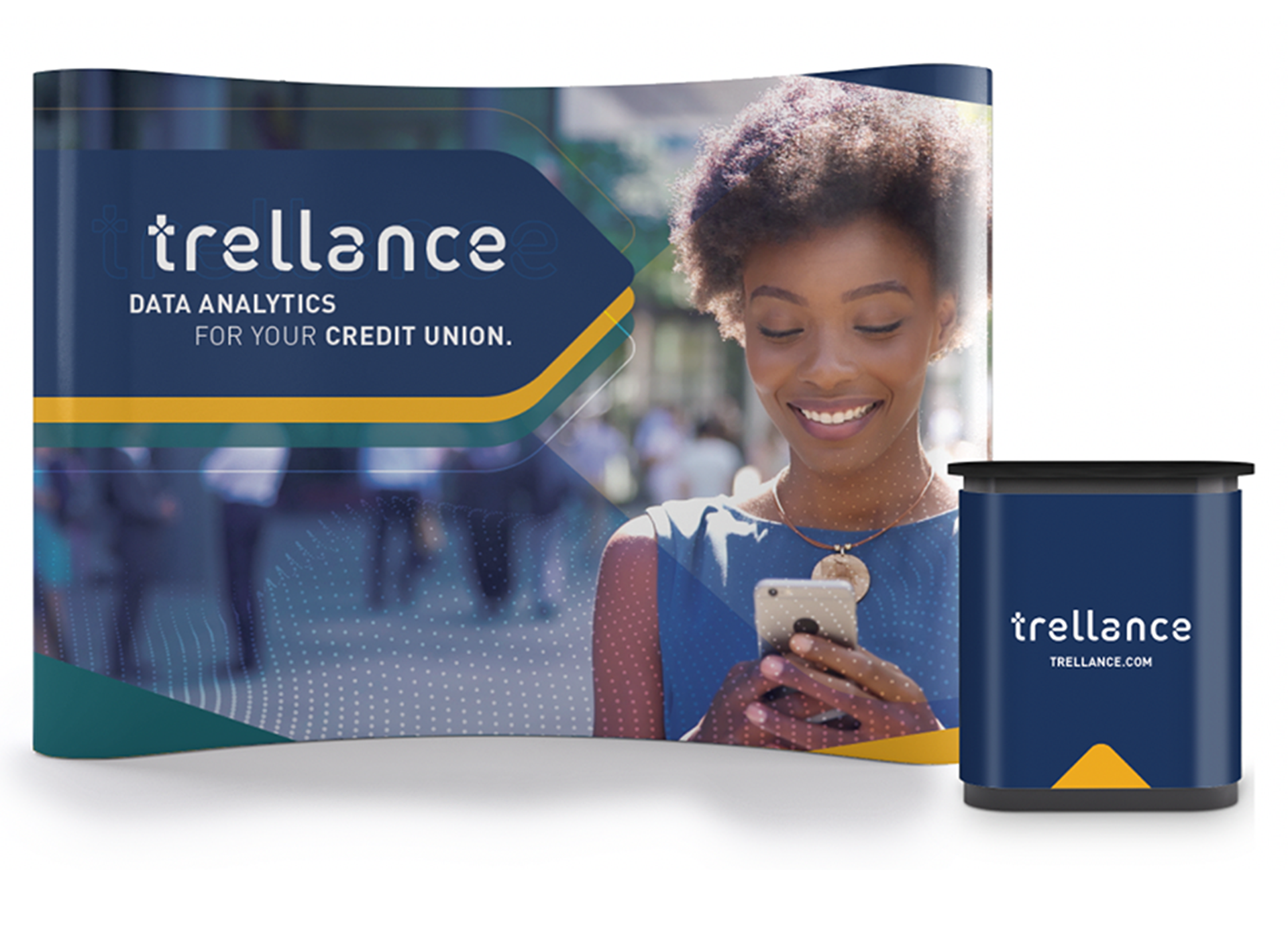 The Trellance Floor Display provides for a fully immersive brand experience while a Trellance associate is presenting at a live event.